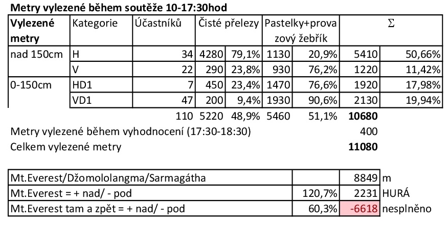 Celkově se vylezlo 7450m. Tedy hlavní cíl v podobě vylezení výšky Mt.Everestu nebyl bohužel splněn o 1399m. V kategorii dětí: